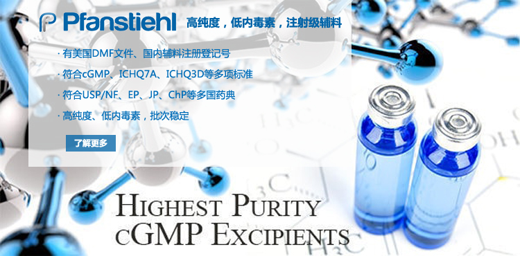 “熱烈祝賀Pfanstiehl的注射級甘氨酸Glycine(G-140)喜獲CDE登記號F20250000403, 這是Pfanstiehl產品獲得的第18個CDE登記號!”甘氨酸在醫藥輔料制劑中應用廣泛,, 可作為緩沖劑,增溶劑,穩定劑等,具有諸多優勢。Pfanstiehl秉承一貫高品質理念,為滿足全球生物制藥行業對于高品質甘氨酸的需求,隆重推出的注射級甘氨酸Glycine (G-140), 具有超高純度,超低內毒素,超低金屬殘留的特點,單獨檢測29種金屬離子,并且新增DNA,RNA,DNA酶,RNA酶和脂肪酶,亞硝酸鹽等多項質量指標的檢測,符合多國藥典規定(USP, EP, BP, JPE, ChP),可用于生物治療性藥物和疫苗的生產。產品信息:· 產品名稱:Glycine, High Purity, Low Endotoxin, Low Metals, USP, EP, BP, JPE, ChP (G-140)· 中文名稱:甘氨酸· 分子式:C2H5NO2· 分子量:75.07 g / mol· CAS號:56-40-6· 產品貨號:G-140產品特點: · 超高純度,超低內毒素,超低微生物含量,超低金屬雜質殘留· 質量指標新增DNA,RNA,DNA酶,RNA酶,脂肪酶和亞硝酸鹽檢測· 符合多國藥典:USP, EP, BP, JPE, ChP· 符合ICH Q3D標準· 符合GMP標準· 已獲DMF和CDE登記號 產品應用:· 緩沖劑· 穩定劑· 增溶劑如果您對Pfanstiehl注射級別Glycine G-140感興趣,歡迎聯系Pfanstiehl 中國區代理商北京西美杰科技有限公司獲得如下詳細的產品概況說明文件和測試樣品。Pfanstiehl Inc.最新產品系列如下,歡迎聯系北京西美杰科技有限公司獲取100g裝免費樣品。北京西美杰科技有限公司為Pfanstiehl中國代理,為客戶提供完善的技術支持與售后服務。歡迎撥打西美杰客服電話400-050-4006或者登陸網站www_xmjsci_com.wangpixi.com了解更多信息。 更多>